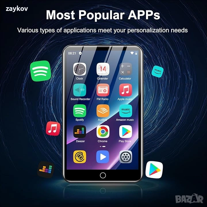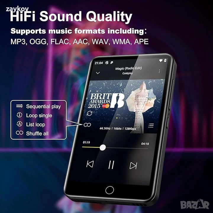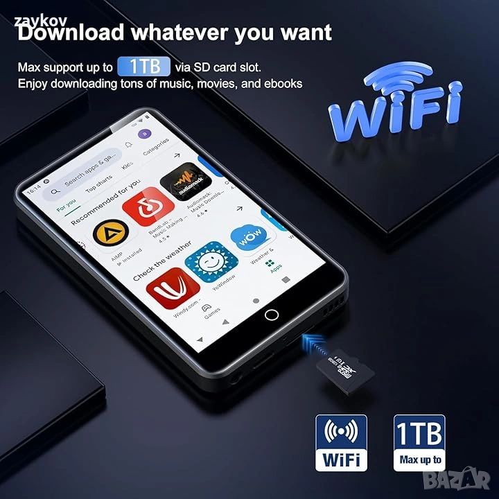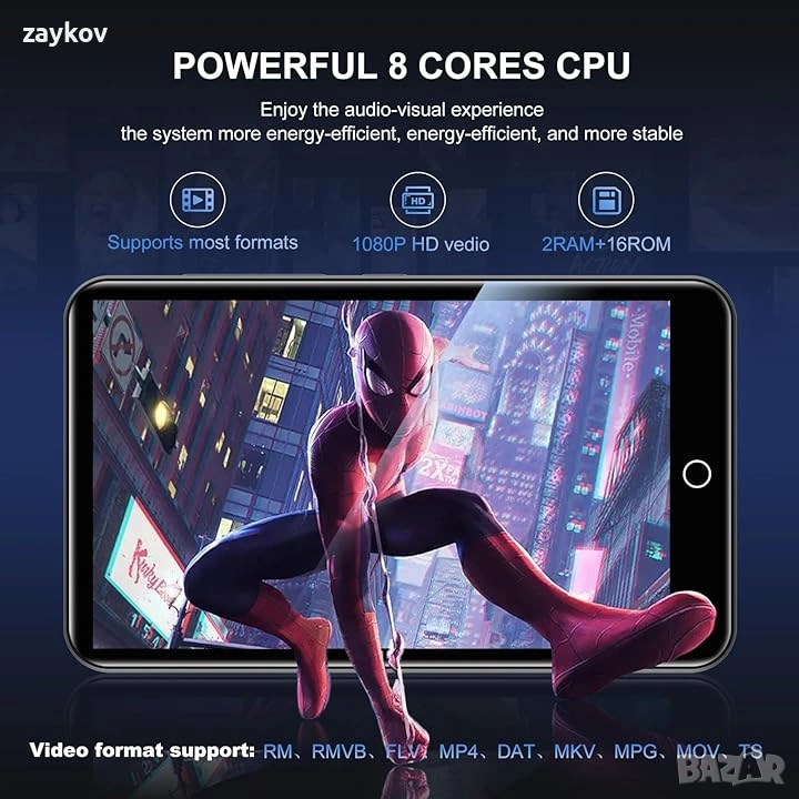 Всичко в едно устройство за забавление: MP3 плейърът ZAQE интегрира Bluetooth и WiFi и е предварително зареден със Spotify, Apple Music, Audible, Amazon Music и Deezer. С FM радио, видео плейър и гласов рекордер, той стриймва музика, позволява ви да гледате видеоклипове офлайн и да четете електронни книги – всички ваши нужди от забавление са покрити. 🎅Бърза и стабилна връзка: Подобреният Bluetooth/WiFi осигурява бързо сдвояване със слушалки, автомобилни аудио системи и телефони. Нулево забавяне, висока стабилност, идеално за дома, тренировки и пътуване до работа. 🎅Висококачествен звук без загуби: Вграден HiFi високоговорител, съвместим със Spotify. Синхронизирайте текстове на песни, създавайте персонализирани плейлисти и настройвайте еквалайзера. Поддържа MP3/OGG/FLAC/AAC/WAV/WMA/APE: Насладете се на чист, завладяващ звук. 🎅1080P HD екран: 4-инчов цветен екран възпроизвежда 720P/1080P видеоклипове (RMVB/MP4/MKV/FLV). Не се изисква конвертиране на формат: ясно и ярко зрително изживяване. 🎅Плавна производителност: Мощен процесор за употреба без забавяне. Заключване на екрана с един бутон (против случайно докосване) и екранна снимка (натиснете и задръжте бутона за захранване): Лесна работа. Голямо място за съхранение от 80 GB: 2 GB RAM + 16 GB ROM + 64 GB разширяема памет. HiByMusic поддържа възпроизвеждане офлайн: прехвърляйте файлове от вашия компютър, не е необходим WiFi. 🎅Дълготрайно захранване: батерия 2000mAh Type-C. 40 часа възпроизвеждане на музика, 3-5 месеца в режим на готовност, идеална за пътуване и ежедневна употреба