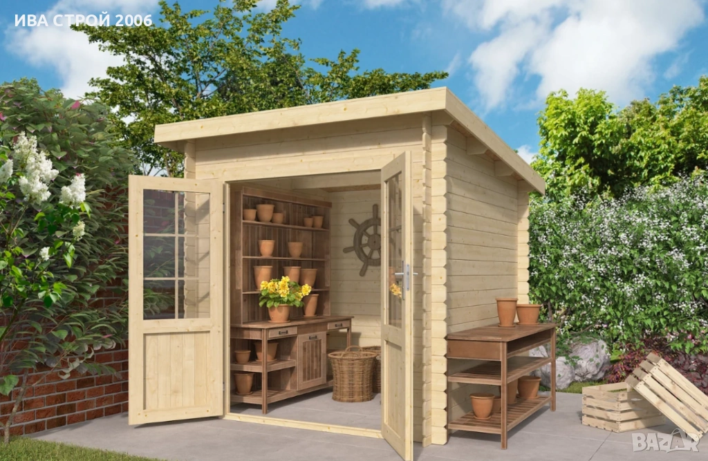 IVA GARDEN HOUSE LA е компактна и функционална сглобяема дървена барака, подходяща за двор, вила или градина. Идеална за съхранение на инструменти, градинска техника, велосипеди или като малко хоби пространство.