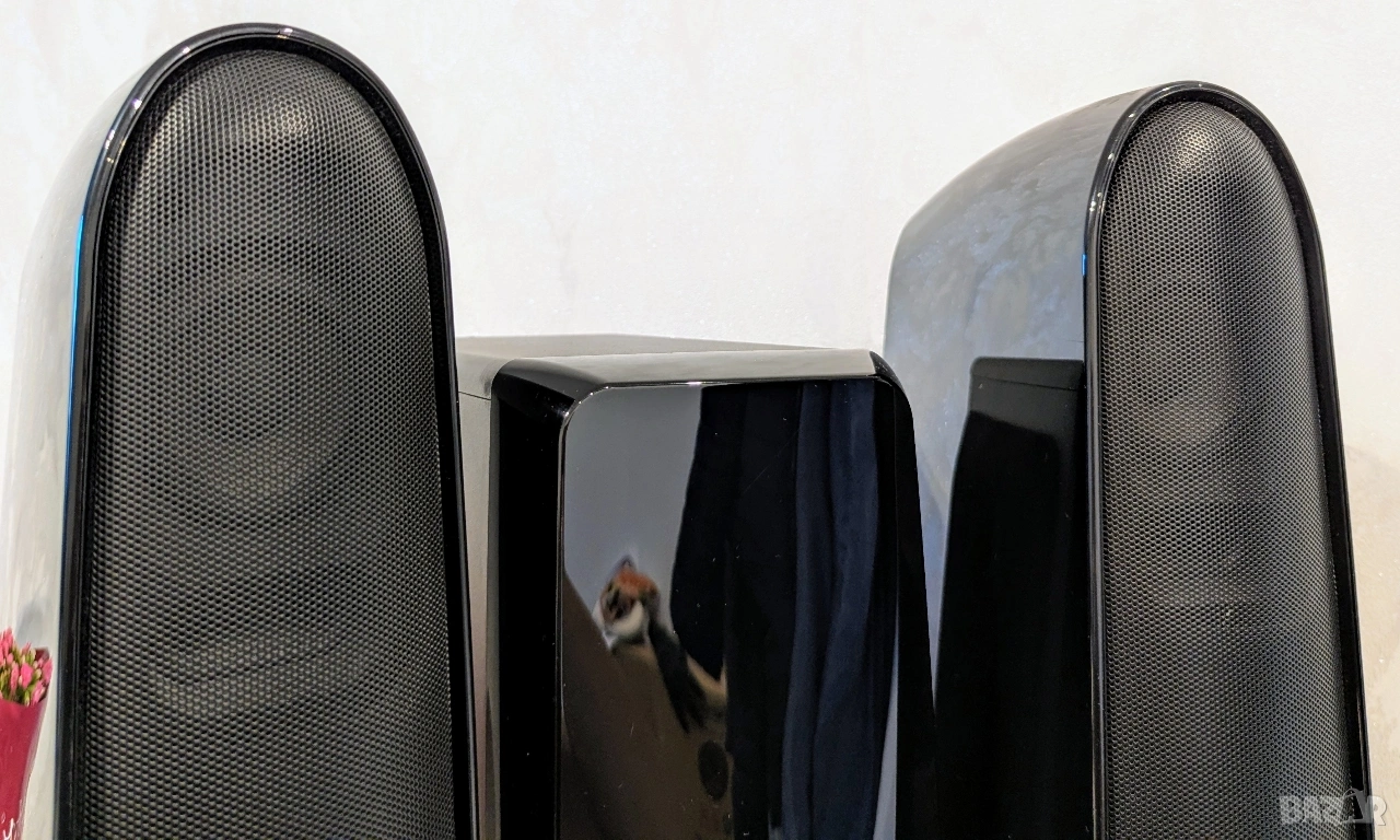 Системата е внос от Щутгарт, Германия. Много малко е ползвана, предимно за радио. Уникално хардуерно и софтуерно състояние. Визуално, неразличима от нова! Цвят, черен пиано лак. Уникален плътен звук и бас. Основни характеристики Samsung RTS-HE10T е 2.1 - канален DVD домашен кинотеатър с RMS мощност от впечатляващи те 160W, поддържащ MP3 и WMA аудио, DivX видео, Dolby Digital звук и разполагащ с DVD плейър и 15 предварително настроени радио станции. ЗАВОДСКИ
