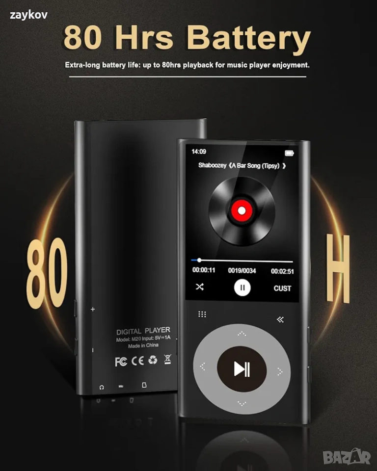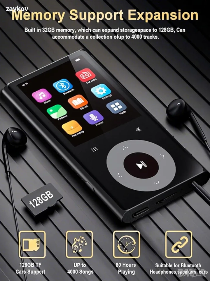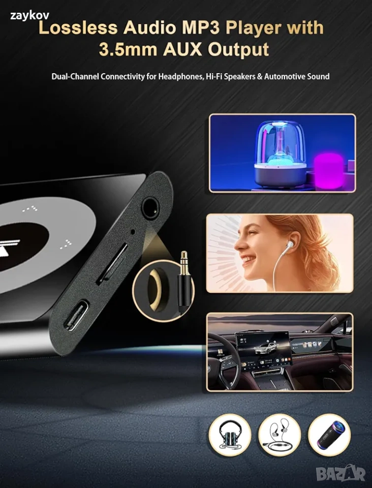 🎧【Качество на HiFi звук без загуби】Този Bluetooth MP3 плейър предлага оригинално музикално изживяване без загуби с професионален интелигентен чип за цифрово намаляване на шума и зряла HiFi технология. Поддържа избор от предварително зададени настройки на еквалайзера: рок, фънк, хип-хоп, джаз, класическа, техно и персонализирани. Съвместим с повечето популярни аудио формати: MP3, WMA, WAV, APE, FLAC и др.