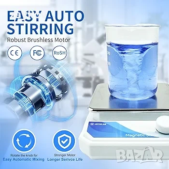 Високо качество и дълготрайност: Оборудвана с издръжлив панел от неръждаема стомана 316 и мощна скорост от 3000 оборота в минута, тази магнитна бъркалка осигурява надеждно и ефективно смесване както за лабораторна, така и за домашна употреба. Здравият ѝ ABS корпус повишава устойчивостта на падане, осигурявайки издръжливост и дълготрайна работа.