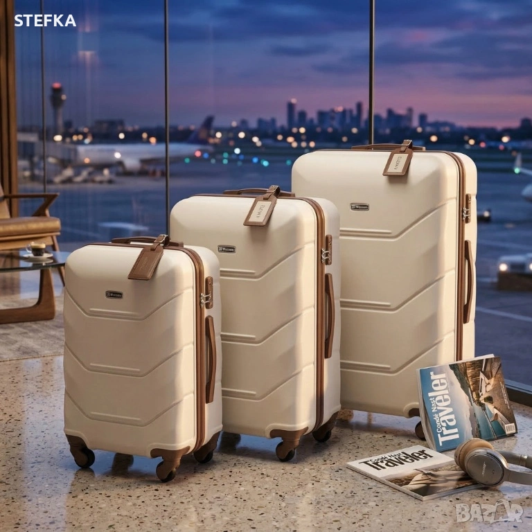 Комплект 3 в 1 Твърди куфари, размери M, XL и XXL, ABS материал, 4 колела 360°, кодирано заключване