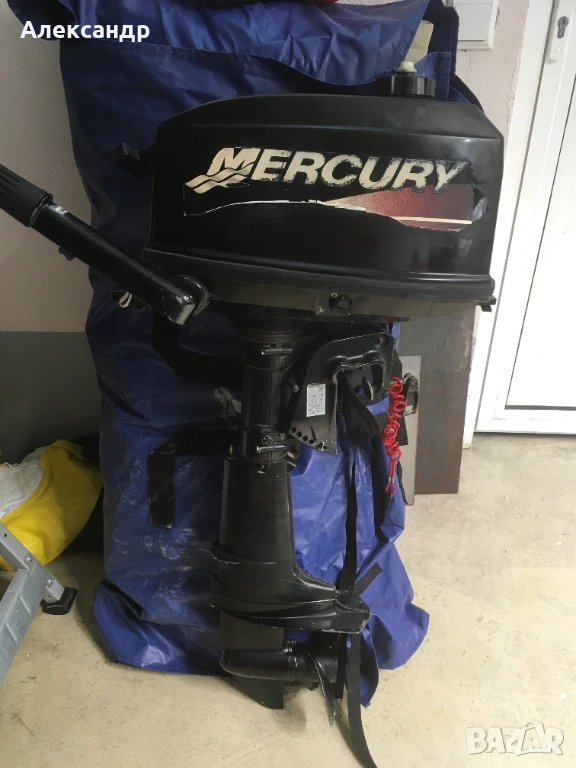 Продавам 4-тактов извънбордов двигател Mercury 2.5 HP. Двигателят е в отлично визуално състояние и е използван много малко като помощен двигател за ветроходна лодка.