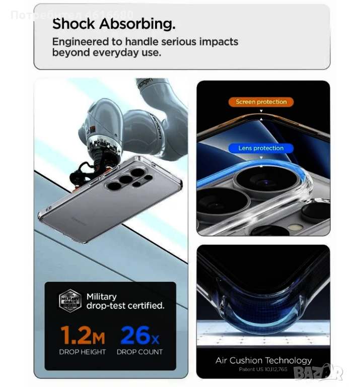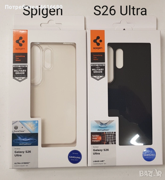SPIGEN case LIQUID AIR за SAMSUNG S26 matte black, SPIGEN ULTRA HYBRID for SAMSUNG S26 crystal clear → Обява 53890054