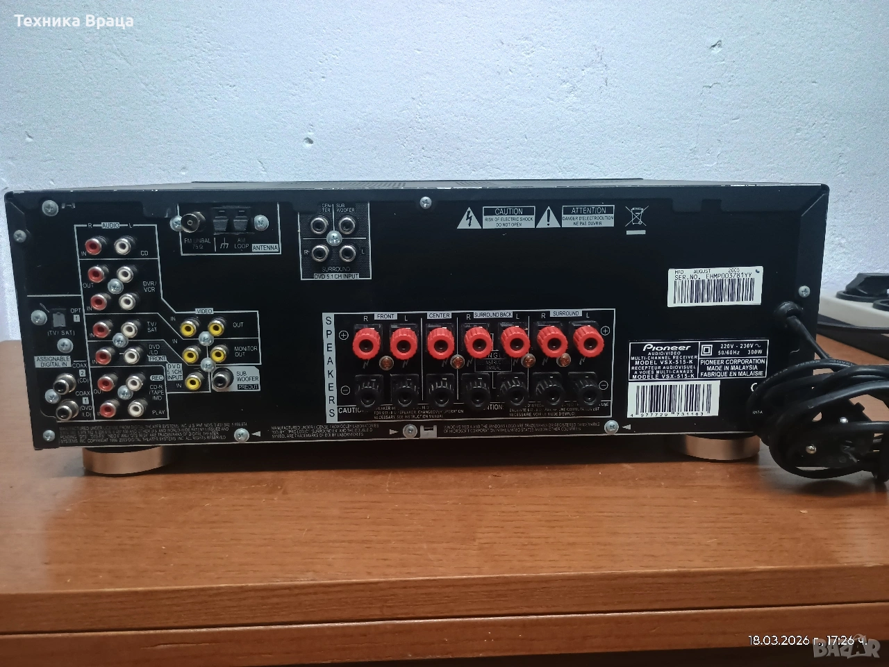 Pioneer VSX-515-K 6.1-канален ресивър с голяма мощност! Изпращам видео.