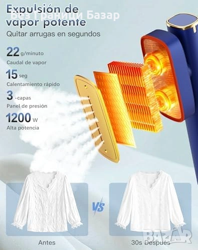Мощна пара до 22 г/мин за по-лесно премахване на гънки