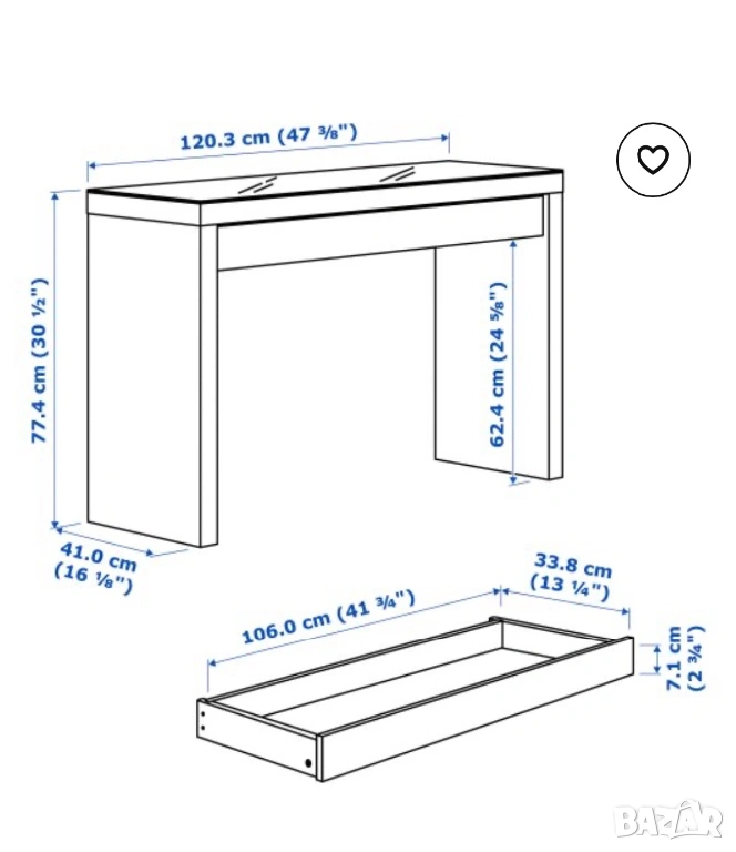 Тоалетна маса ikea malm → Обява 53890512