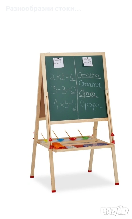 Двустранна детска дъска от естествено дърво на немската марка Relaxdays. Изключително стабилна и качествена изработка.