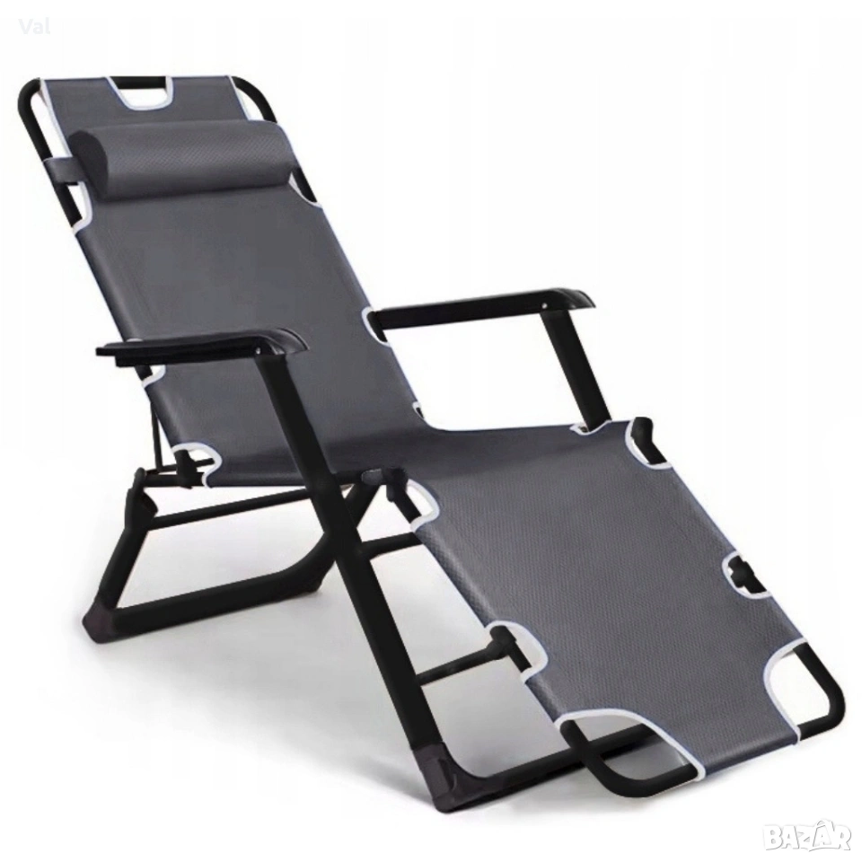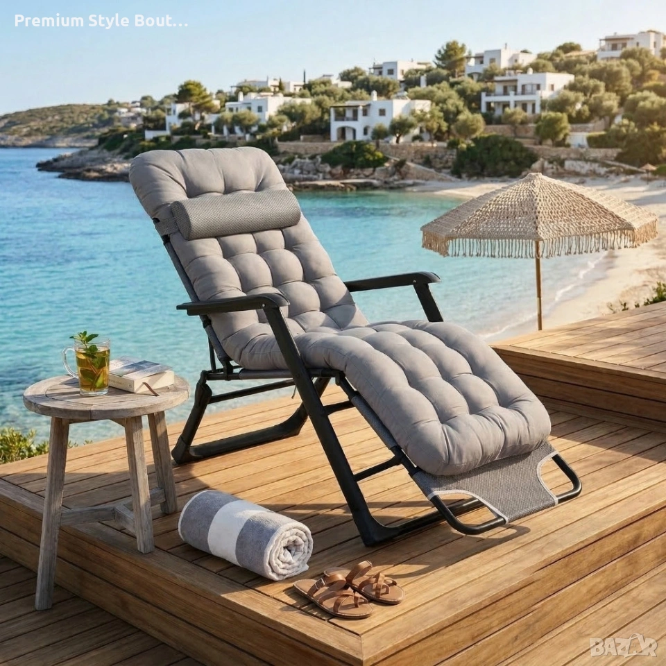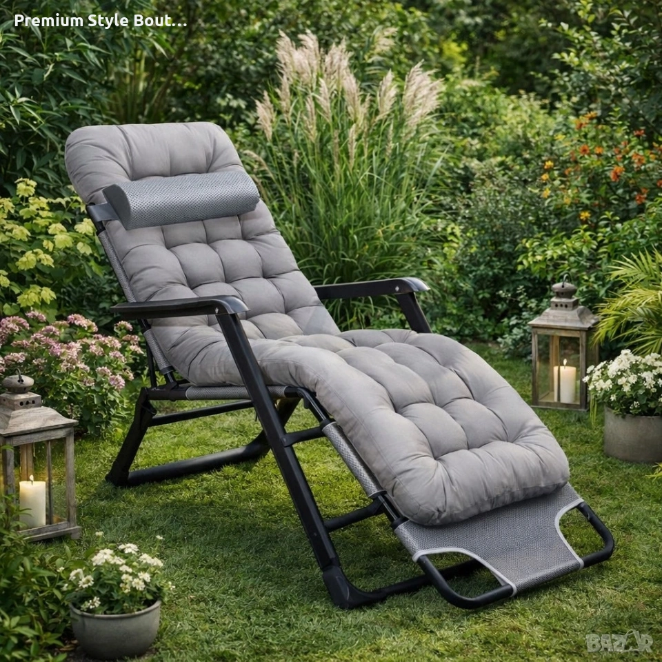 Сгъваем градински шезлонг с мека ватирана възглавница, регулируема облегалка и метална рамка