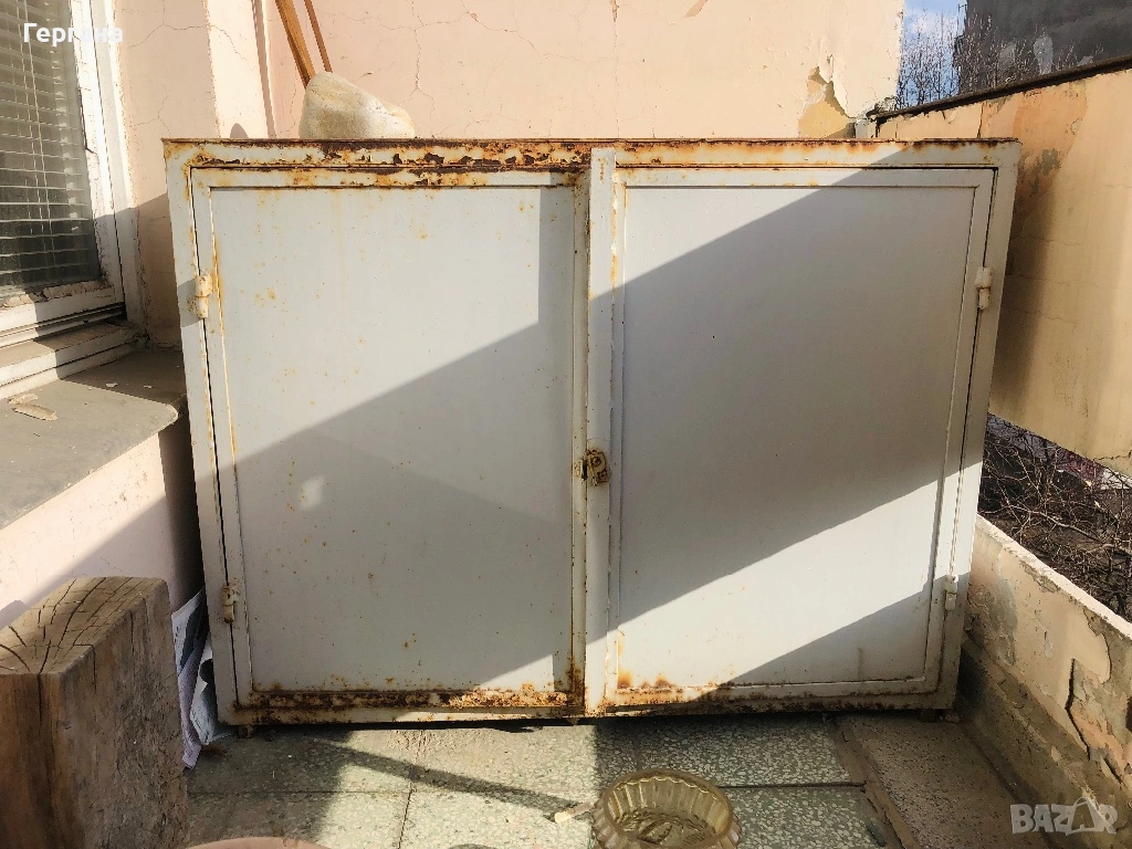 Шкафът е с видими следи от употреба и ръжда и нужда от пребоядисване.