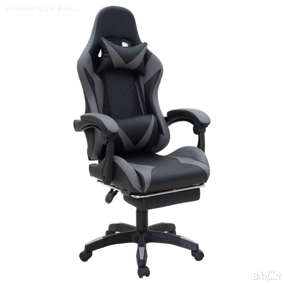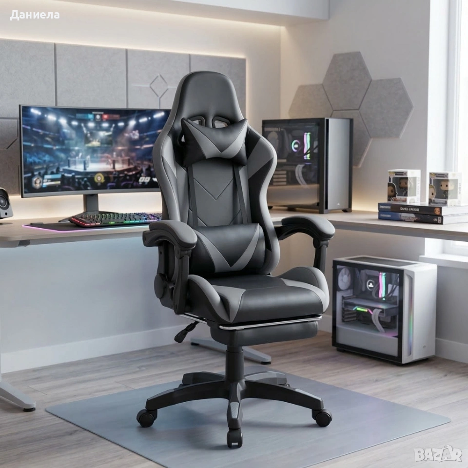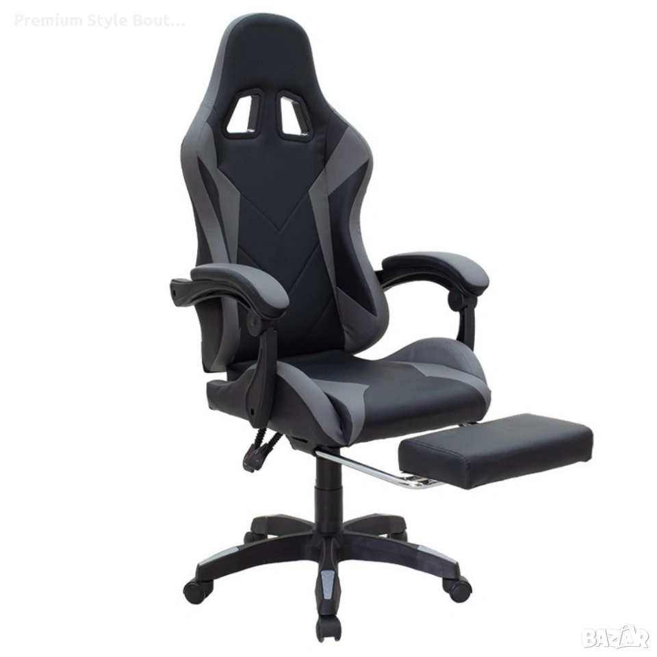 Геймърски стол с релакс механизъм, прибираща се поставка за крака и еко материал