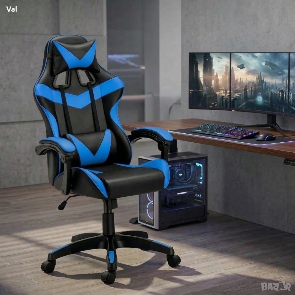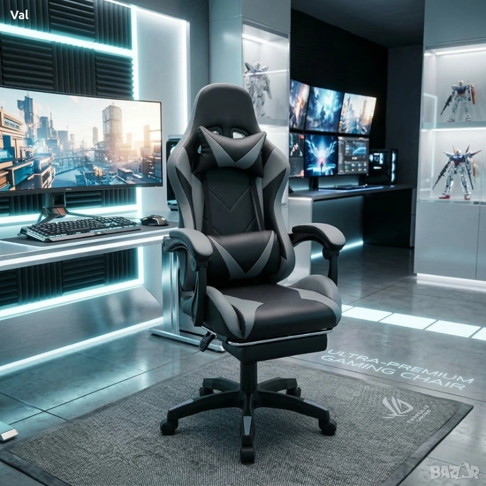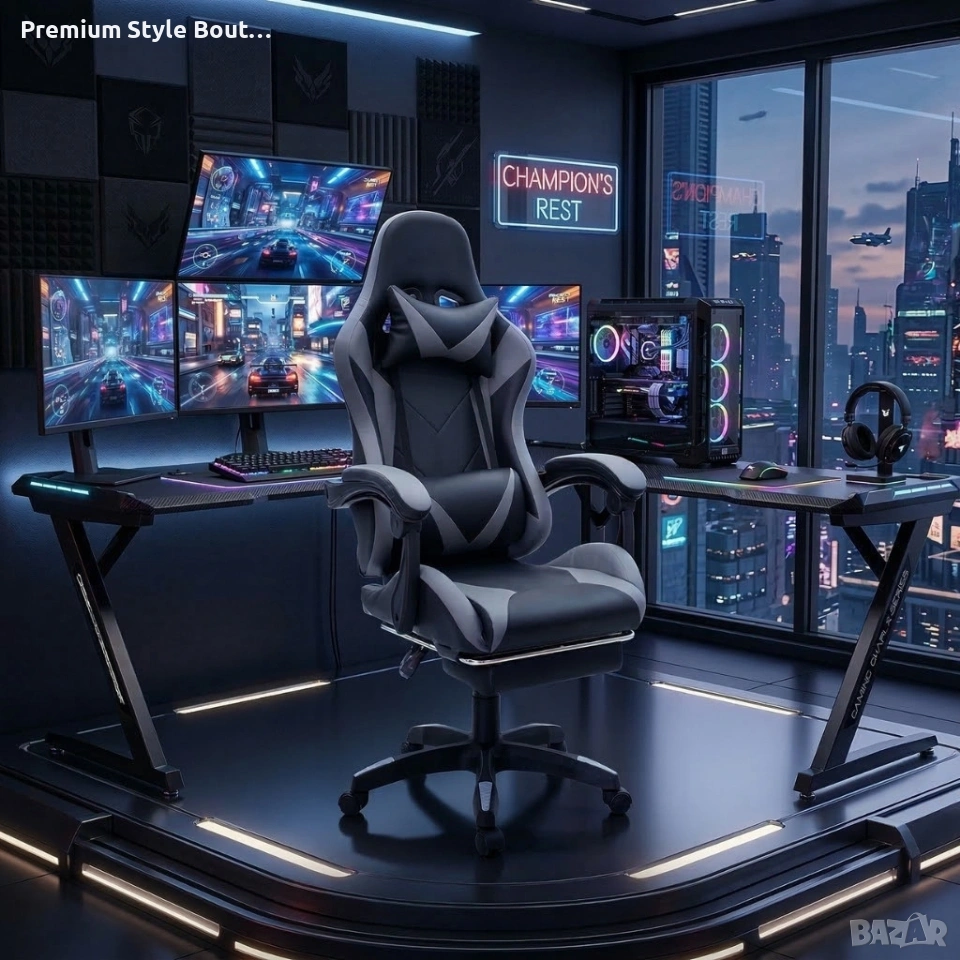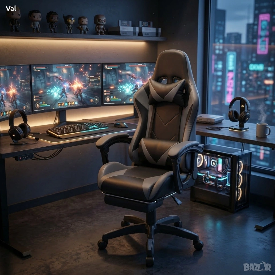 Геймърски стол с релакс механизъм, прибираща се поставка за крака и еко материал