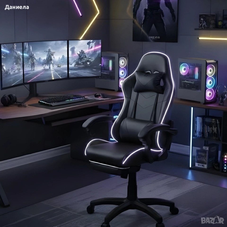 Геймърски стол премиум LED: Ергономичен комфорт със 7 цвята светлинни ефекти и релакс зона → Обява 53891711
