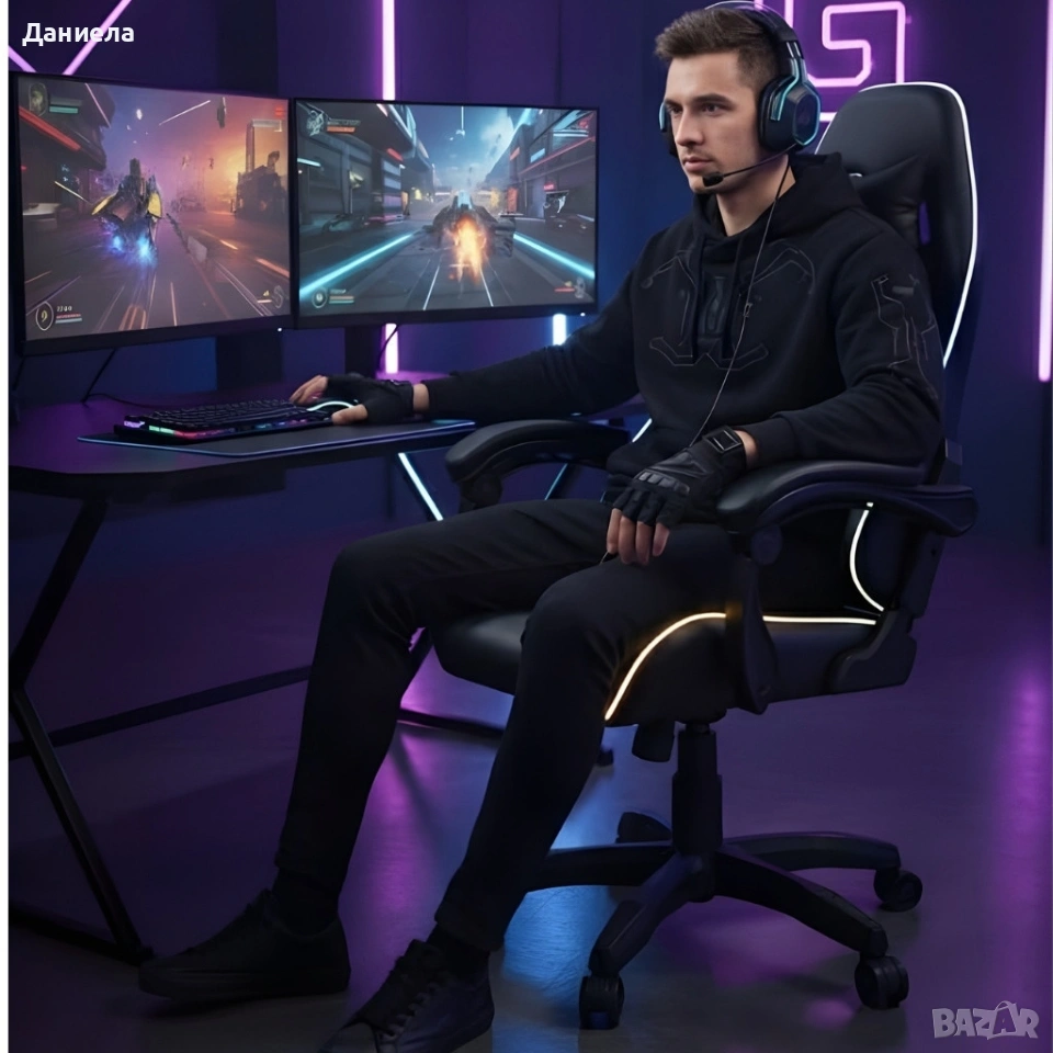 Геймърски стол премиум LED: Ергономичен комфорт със 7 цвята светлинни ефекти и релакс зона