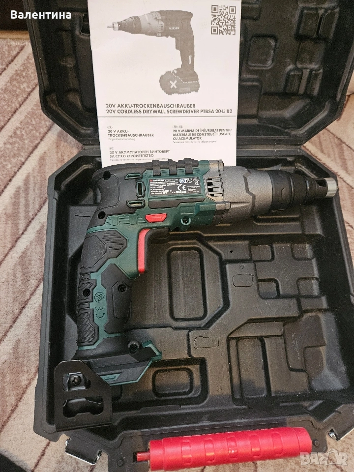 Винтоверт за гипсокартон Parkside PTBSA 20 Li B2.Чисто нов! → Обява 53891872