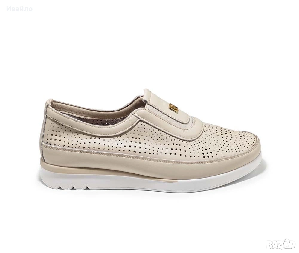 Тези дамски обувки от естествена кожа съчетават лекота, комфорт и изчистен елегантен дизайн, създаден за ежедневието. Моделът е в нежен бежов цвят, който придава свежест и лесно се комбинира с различни визии, а перфорираната повърхност добавя не само стил, но и допълнителна проветривост.