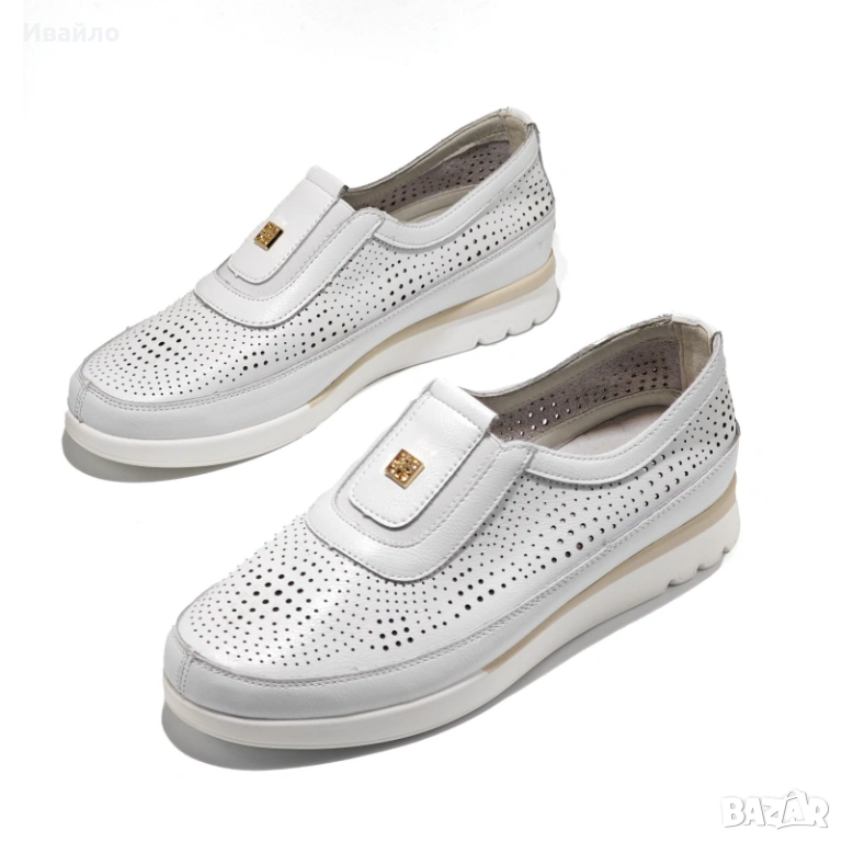 Тези дамски обувки от естествена кожа впечатляват с изчистен дизайн, удобство и практичност, създадени за динамичното ежедневие. Моделът е в класически бял цвят, който придава свежест и лекота на всяка визия, а перфорираната повърхност допринася за модерното излъчване и допълнителен комфорт.