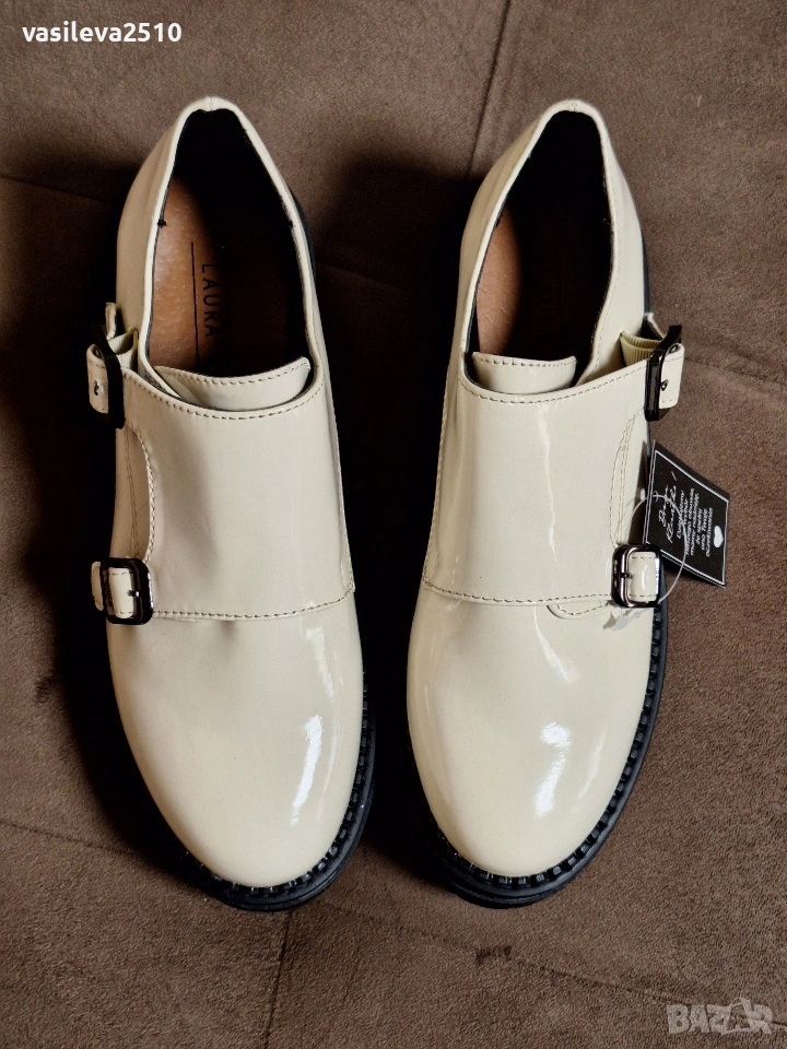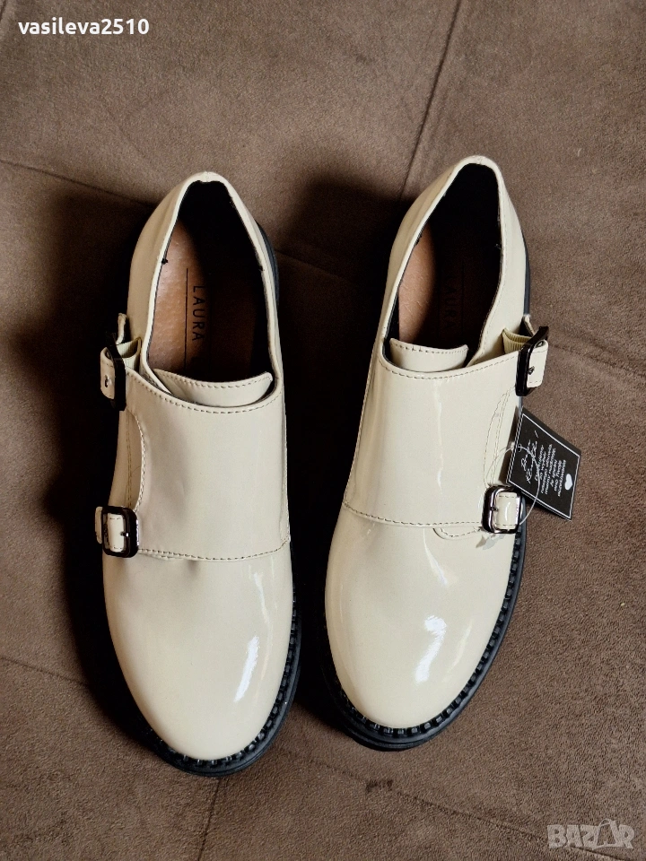 Laura La.Fi нови с етикет бежови обувки, стоят прекрасно, естествена кожа отвътре размер 36см стелката в сантиметри е 23см цена 20€