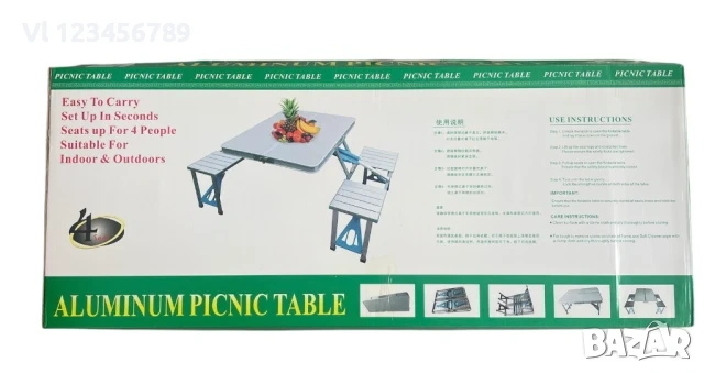 Сгъваема маса с вградени 4 стола -алуминиеви