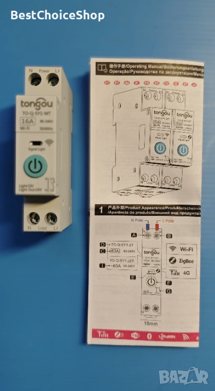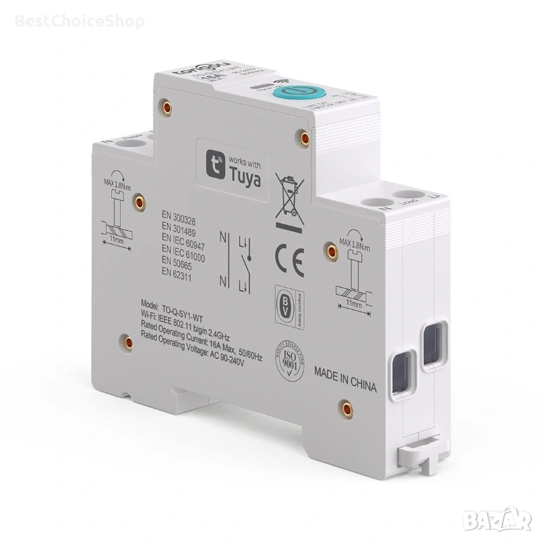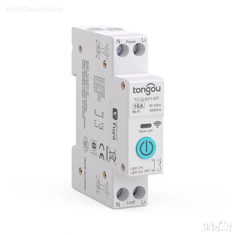 TONGOU WiFi Умен Превключвател 16A DIN релса Дистанционно управление за Умен Дом