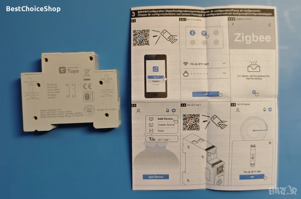 Предпазител, Интелигентен, Wi-Fi, 6A, 1P, 1P+N, защита от пренапрежение, интелигентно програмиране, съвместим с Tuya, Smart Life APP @SmartWiz
