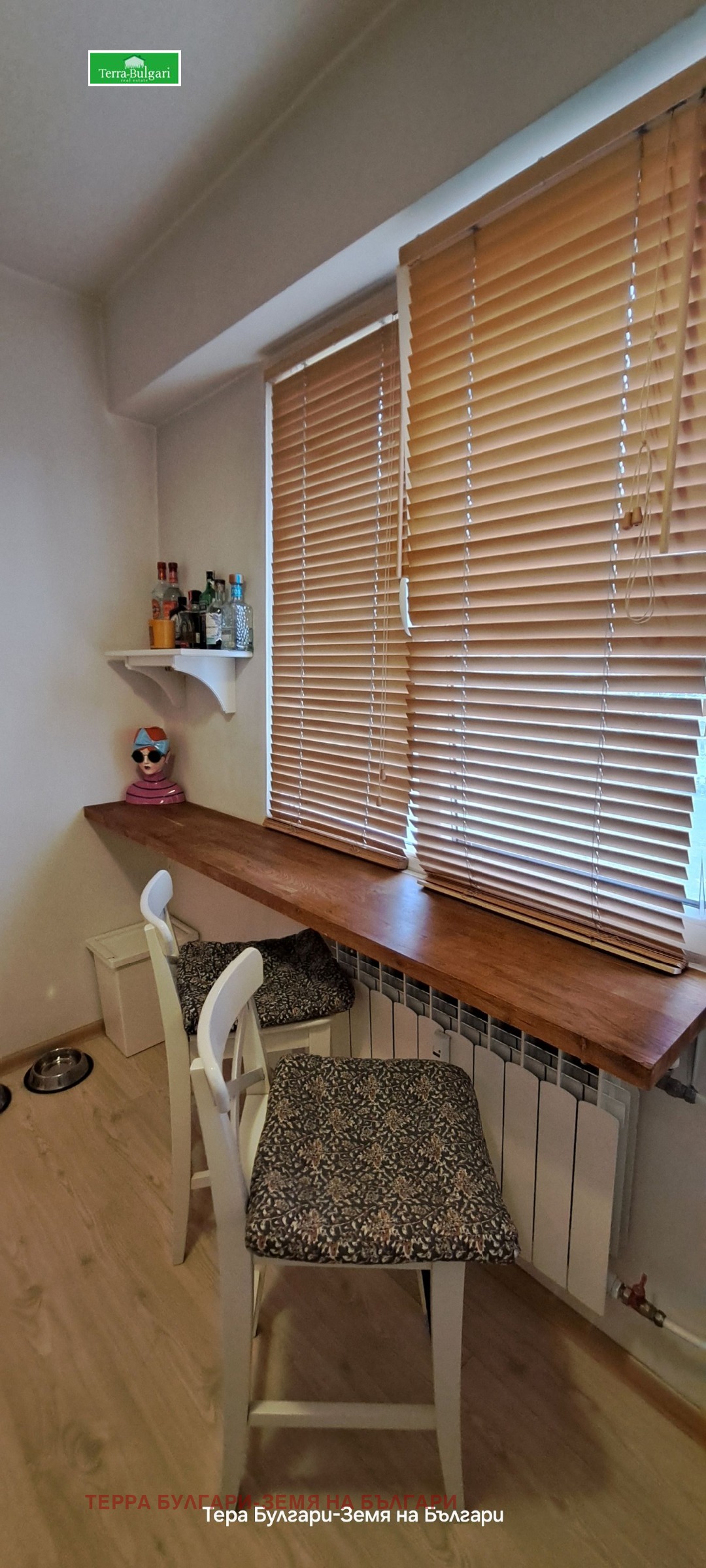 бар плот, вграден гардероб, спалня.