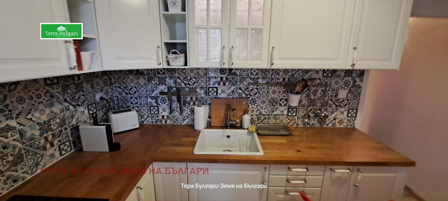 Продава се с цялото обзавеждане. Черна и бяла техника от висок клас, поръчкова кухня,