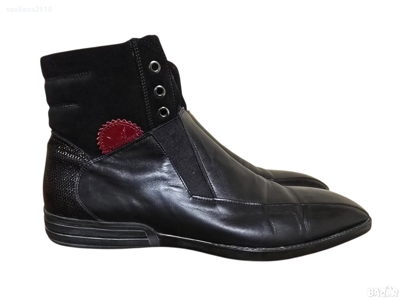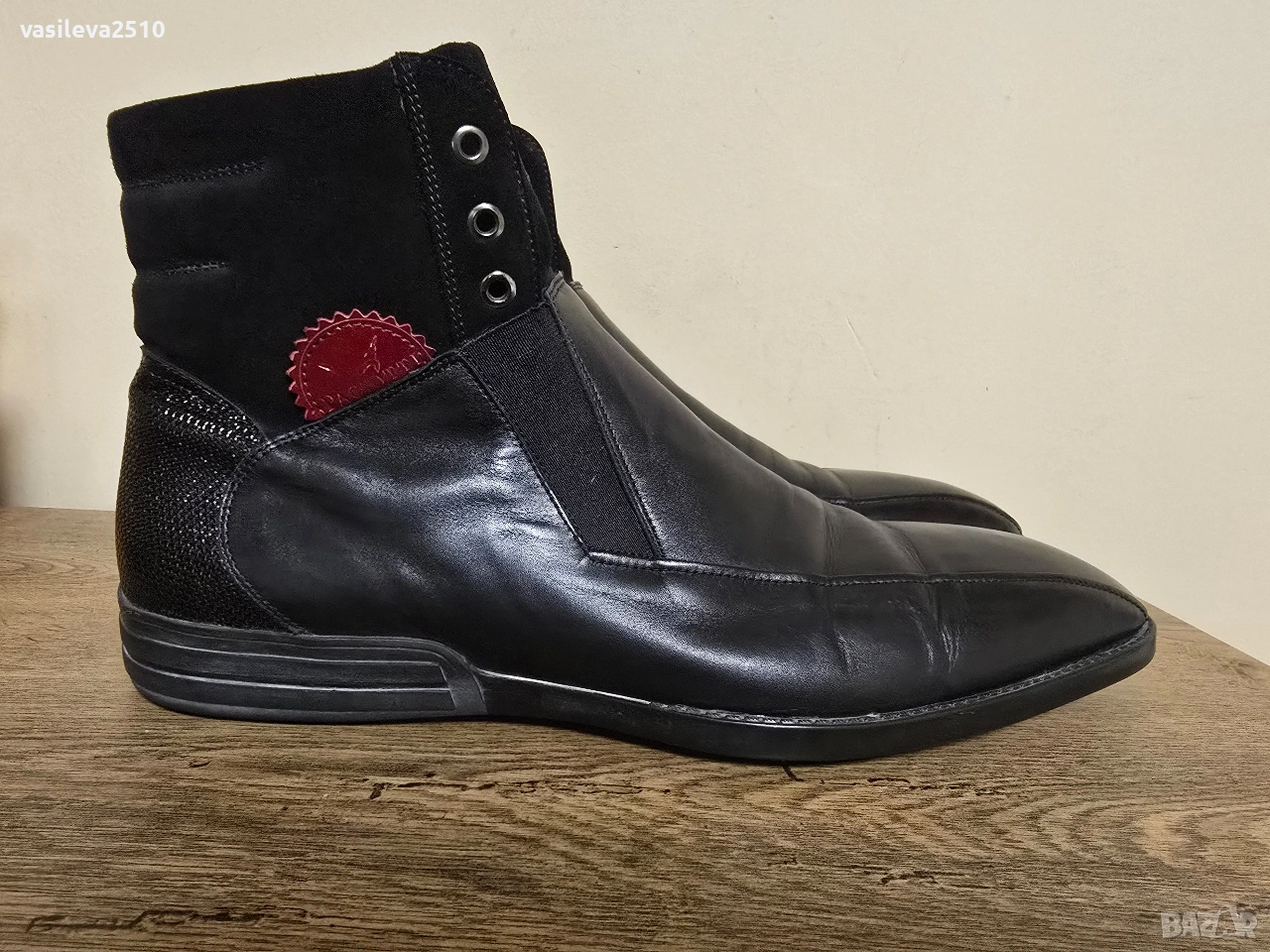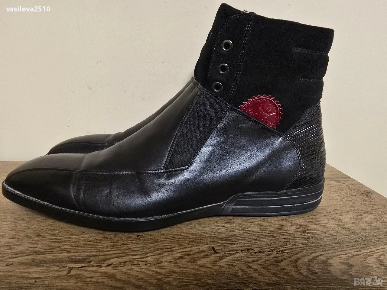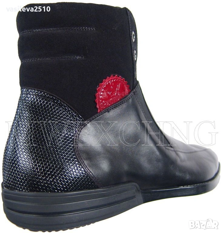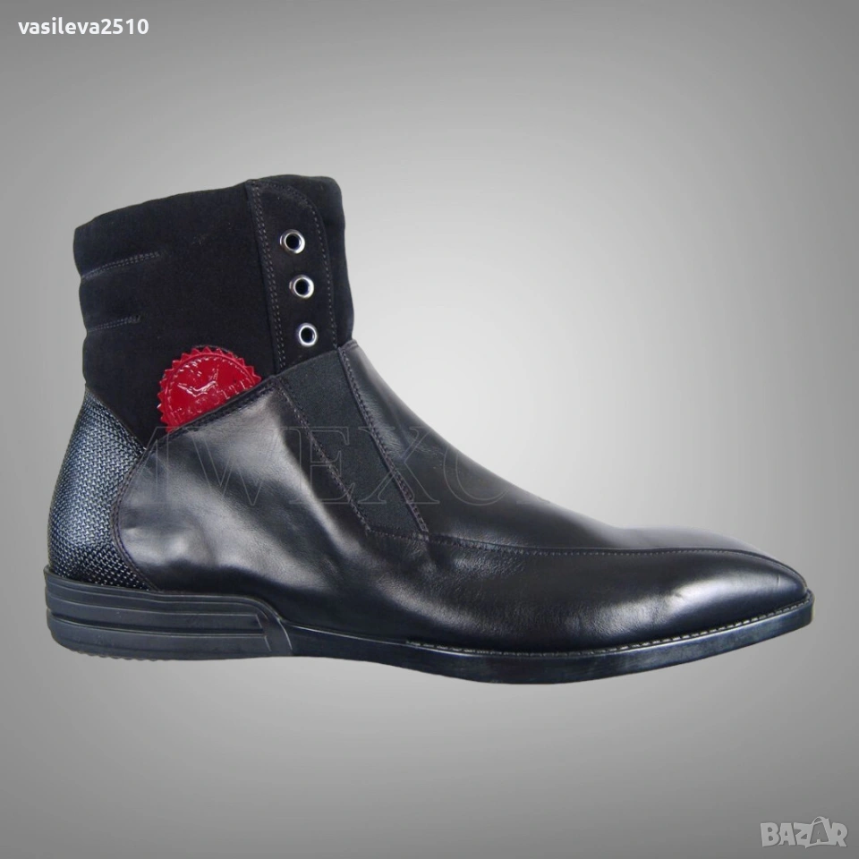 4US Cesare Paciotti оригинални мъжки боти от естествена кожа и естествен велур отстрани с червено лого.