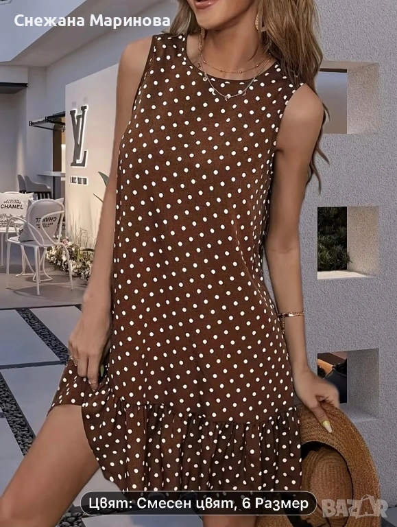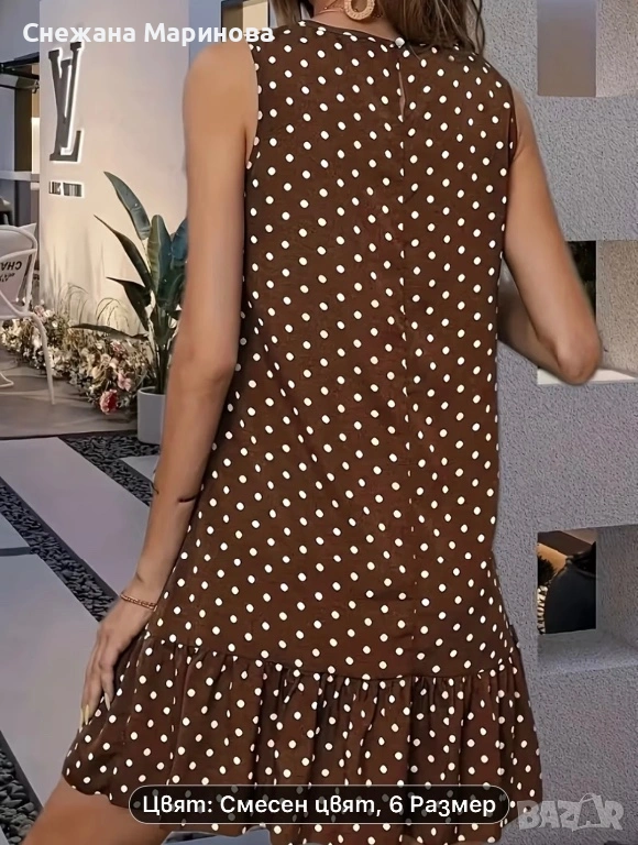 Ефирна лятна рокля кафява на точки, много нежна и удобна.