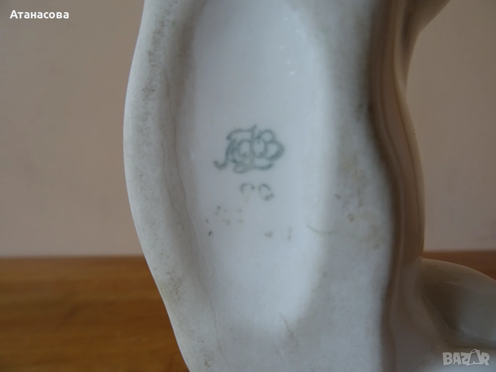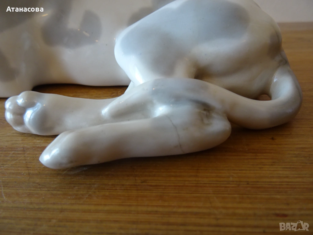 Фигурата е с реставрация на заден ляв крак /има 3 снимки/, не пречи за декорация