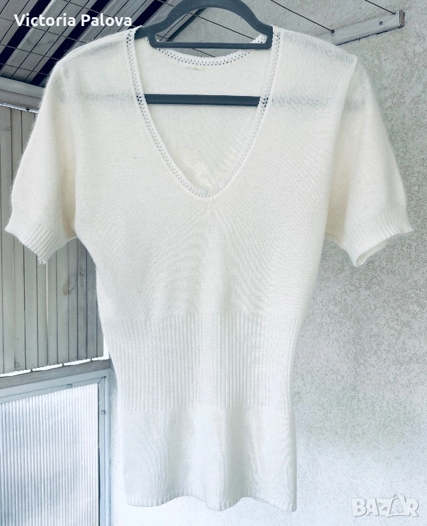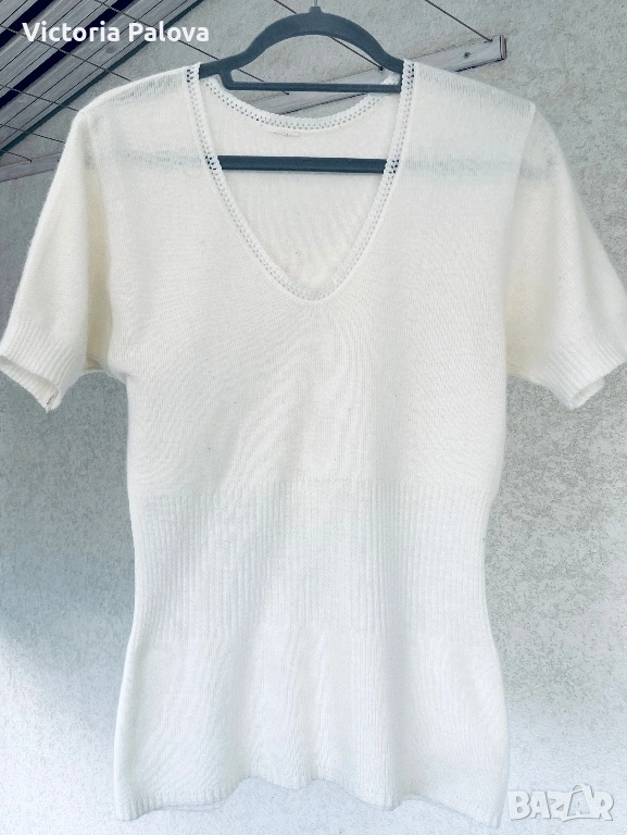 „въздушна" блуза в прекрасен млечен цвят. Материята е невероятно мека и пухкава на допир - комбинация от висок клас естествени нишки (ангора или кашмир с вълна), която гали кожата.