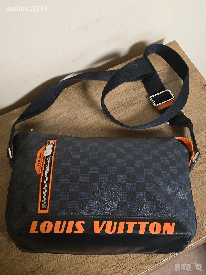 Louis Vuitton Limited Edition оригинална унисекс чанта, за през рамо от естествена кожа с едно основно отделние и няколко вътрешни джоба. Чантата е използвана в много добро състояние, липсва държача на ципа показано на последната снимка, модела е лимитиран цена 200€