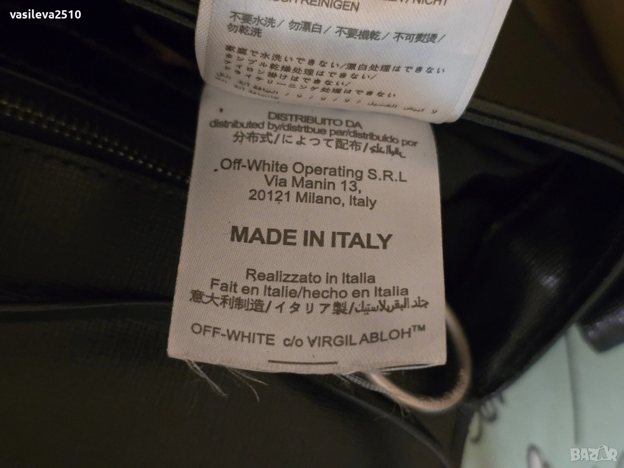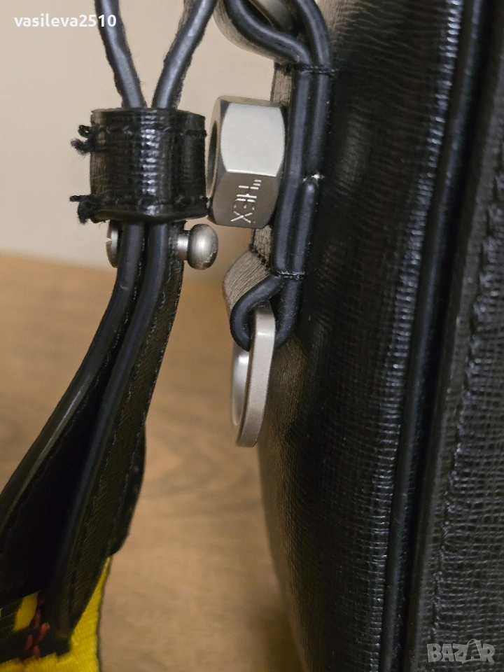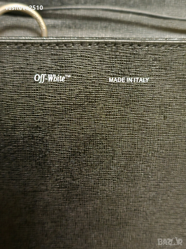 Off-White оригинална дамска чанта от естествена кожа, модела е много интересен с едно основно отделние и два вътрешни джоба чантата е използвана в много добро състояние без никакви забележки цена 150€