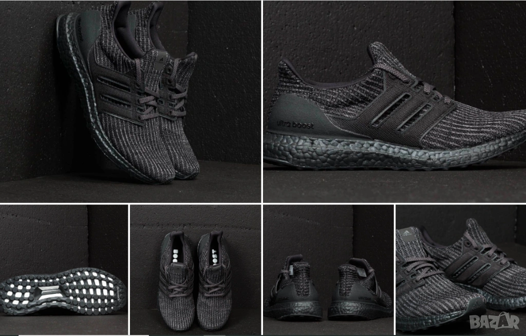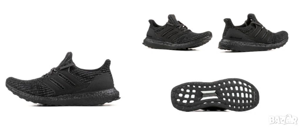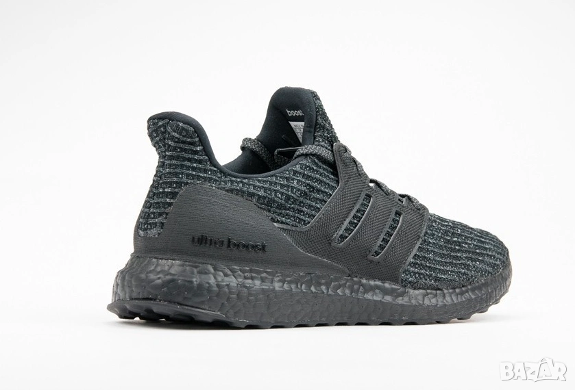 adidas UltraBoost 4.0 "Triple Black". Този модел е известен със своя изцяло черен дизайн (monochrome), включващ черна междинна подметка Boost и горна част от материала Primeknit.