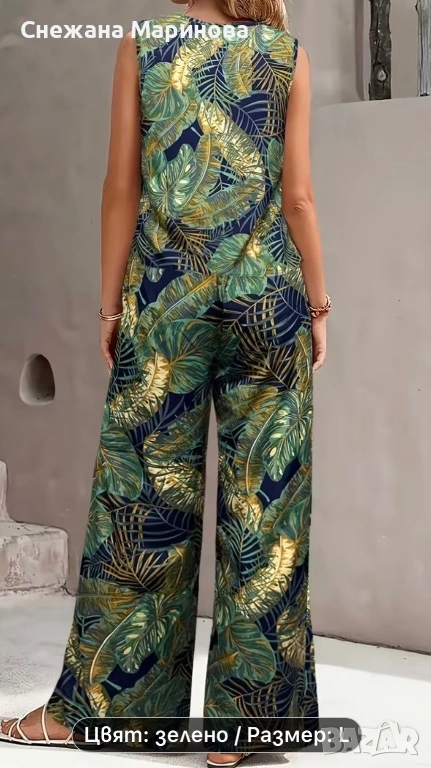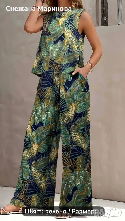 Свеж летен комплект панталон с блуза без ръкав приятна лека материя.