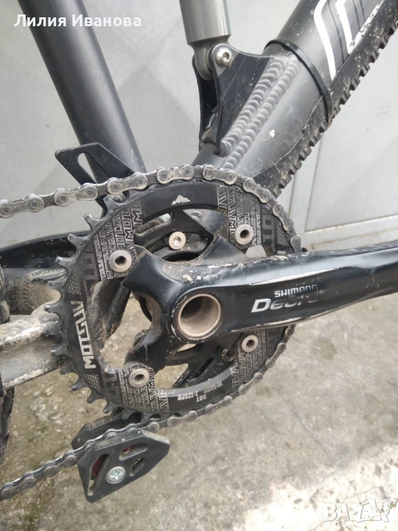 7: Курбели Shimano Deore единична плоча и водач за мекица.