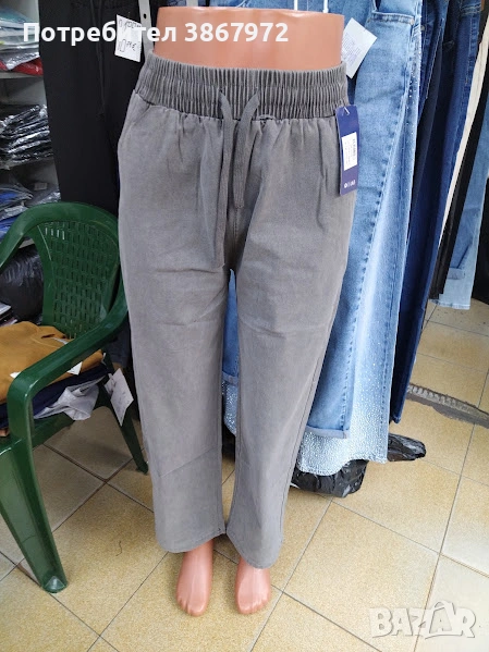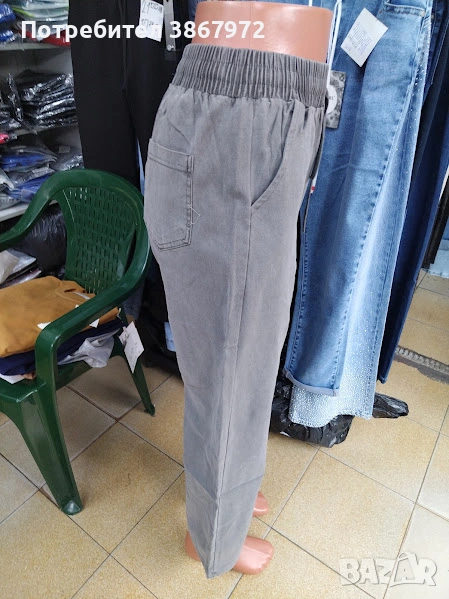 Дамски Дънки прави крачоли с ластик и връзка на талията → Обява 53892976