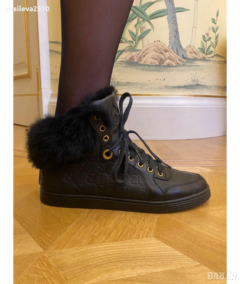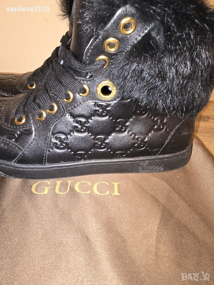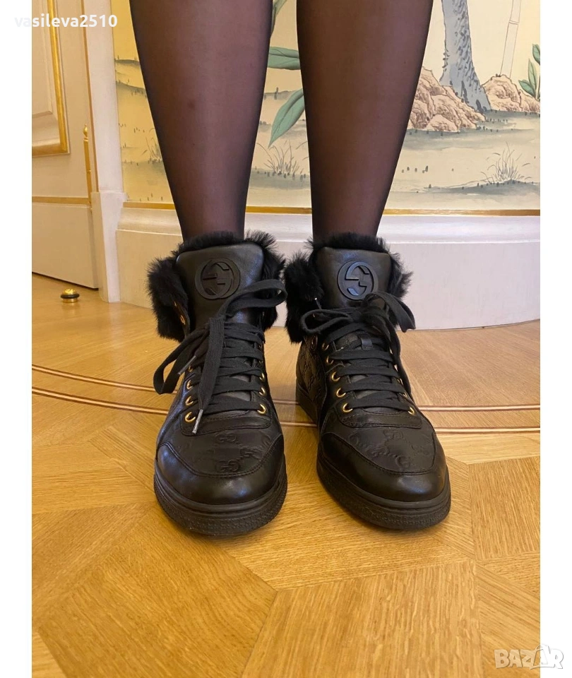 Gucci дамски кецове от естествена кожа и естествен косъм → Обява 53893006