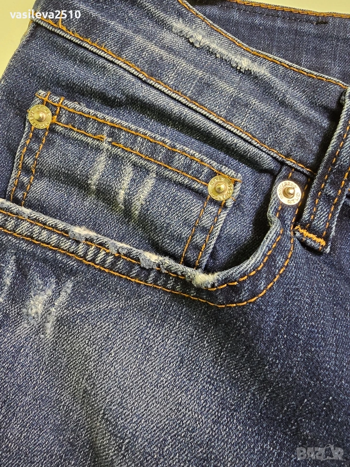 Dsquared2 оригинални дамски дънки, модела е слим с емблематичния накъсан ефект, размер по-етикет 30, но отговорят на S/M.