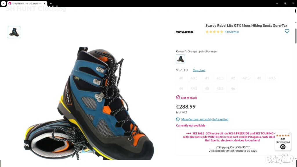 Марка: SCARPA Rebel Lite GORE-TEX Leather Boots - обувки естествена кожа водонепромокаеми SL1-327 Размер: EUR 44 - дължина на стелката 28,5 см , височина 19,5 см.
