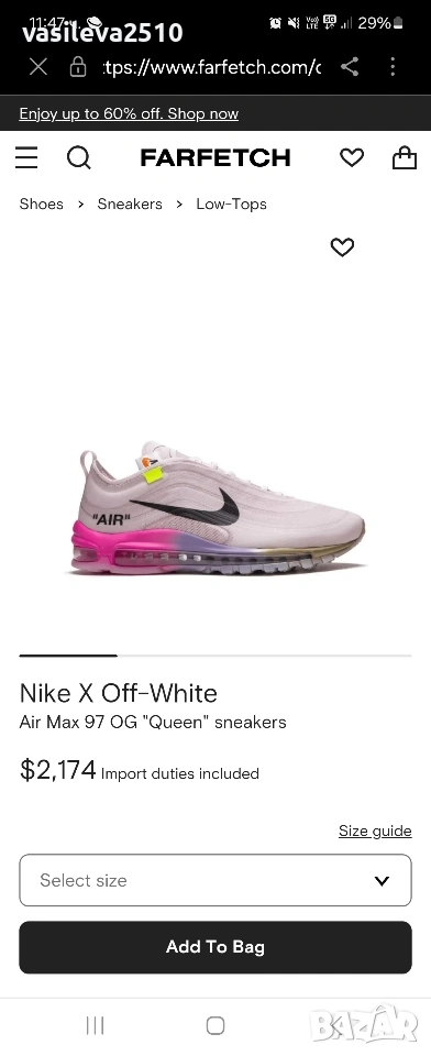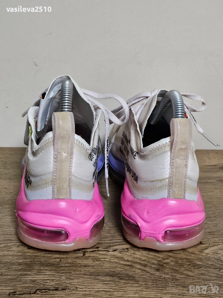 Колаборация между Nike и Off-White, реалната цена на маратонките е над 4000лв, а втора употреба започват от 1000лв, почти никъде го няма наличен и модела.