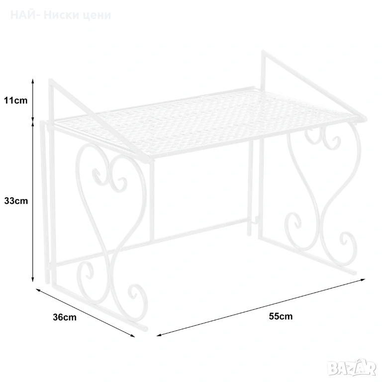 Издръжлива желязна конструкция : Изработена от здраво желязо с наноизпичащо покритие, тази лавица е устойчива на корозия и износване, осигурявайки дълготрайна употреба в кухнята или банята.