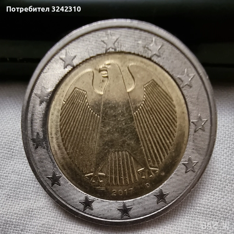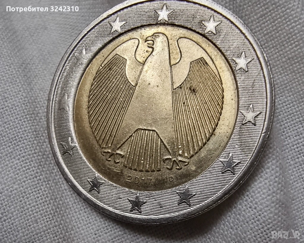 Предлагам немска монета от 2 евро от 2017 г. с грешка при сечене. Интересен колекционерски артикул за нумизматични ентусиасти. Такива грешки при сечене са рядкост. Моля, вижте снимките за подробности. Разгледайте и другите ми обяви! Приятно разглеждане! Частна продажба, следователно без гаранция или връщане.