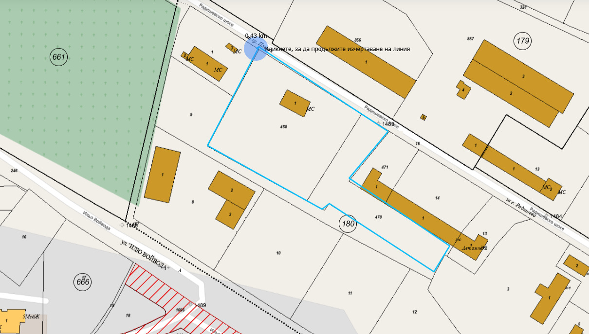 Продават се два съседни парцела с обща площ 6319 кв.м, разположени на Радишевско шосе.