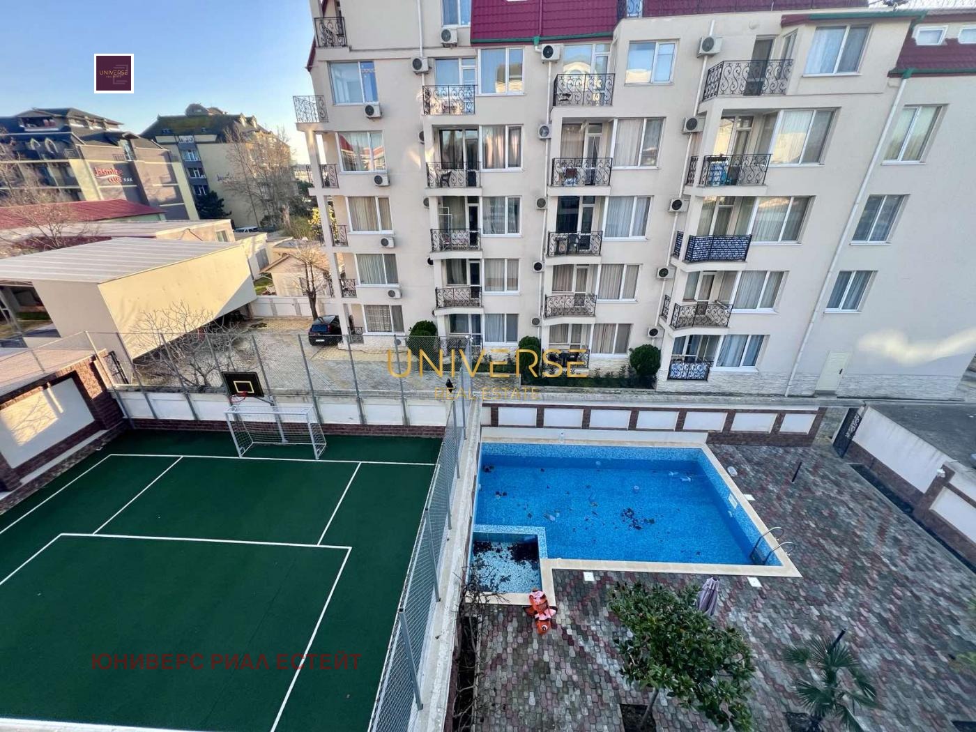 Продается просторная студия в закрытом комплексе на Солнечном Берегу. Продается с мебелью и техникой. Комплекс располагает на своей территории бассейном, зоной для отдыха с шезлонгами и зонтиками, закрытой территорией, гаражами. Маленький, уютный комплекс, идеально подходит не только для отдыха, но и для круглогодичного проживания. Рядом расположена вся круглогодичная инфраструктура. Акт .16#5394
