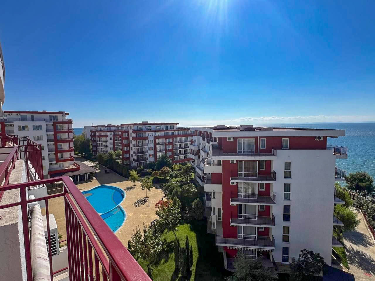 Нашата компания, Болгарский дом, представя красив апартамент с една спалня с панорамна гледка към морето, разположен в комплекс Marina View Fort Beach, един от петте комплекса, съставляващи грандиозния проект Fort Knox Grand Resort в Свети Влас. Апартаментът се намира на 5-ти етаж от шестетажна сграда и заема 76 квадратни метра. Продава се до ключ и е в отлично състояние, което го прави идеален за незабавно нанасяне. Апартаментът се гордее със спираща дъха гледка към морето, създавайки ежедневно усещане за спокойствие и комфорт. Този дом предлага възможност да се насладите на красотата на природата и удобствата на съвременния живот на брега на Черно море.