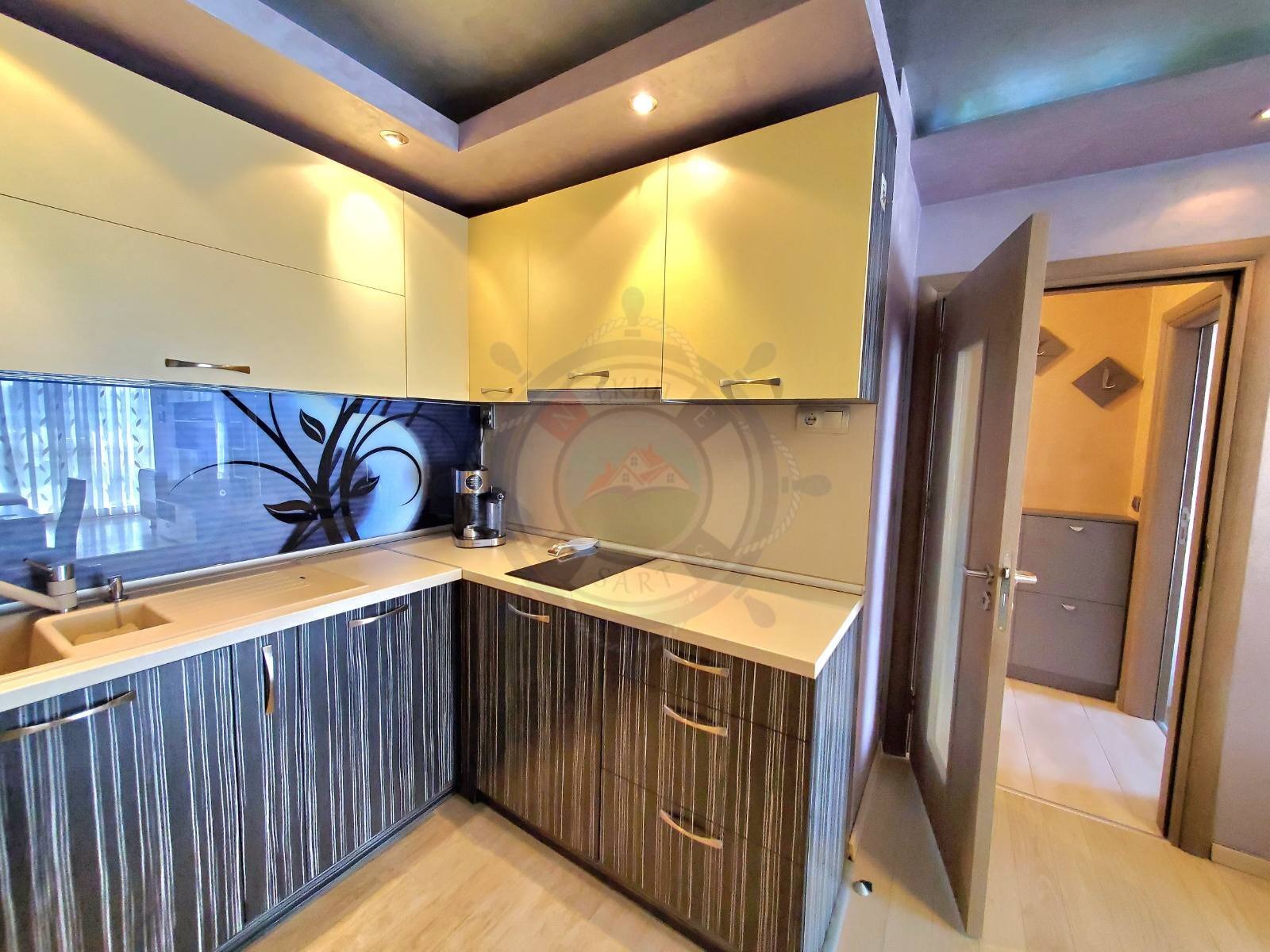 Апартаментът се състои от всекидневна с кухненска, трапезарна и холова част, спалня, тераса, баня с душ кабина, тоалетна и входно антре.