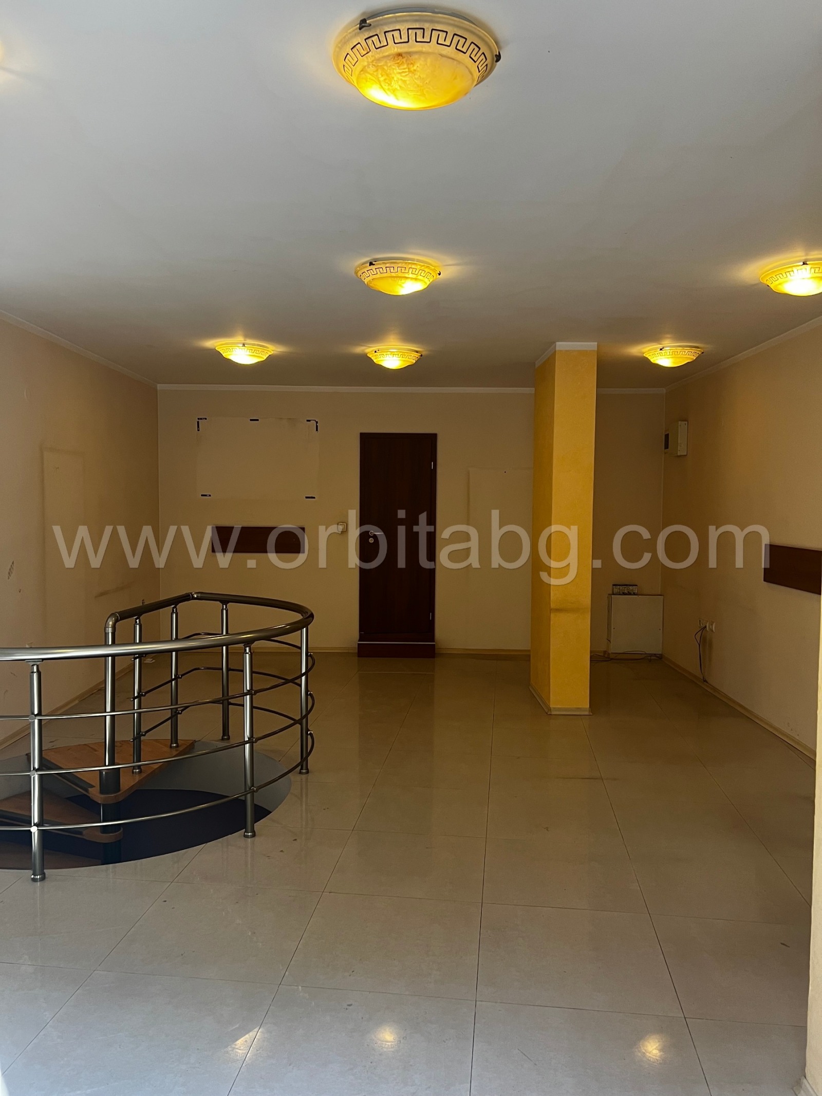 Агенция ОРБИТА предлага за продажба помещение със статут на офис с чиста площ от 84 кв.м., разпределена на две нива свързани с вътрешно стълбище, от които: партерно ниво на кота 0.00 м. около 50 кв.м., включващо офисно помещение, санитарен възел и вътрешно стълбище; сутеренно ниво: на кота -2.60м. около 30 кв.м., включващо складово помещение и вътрешно стълбище. Изложение запад, помещението има голямо лице на улица Ловен парк.