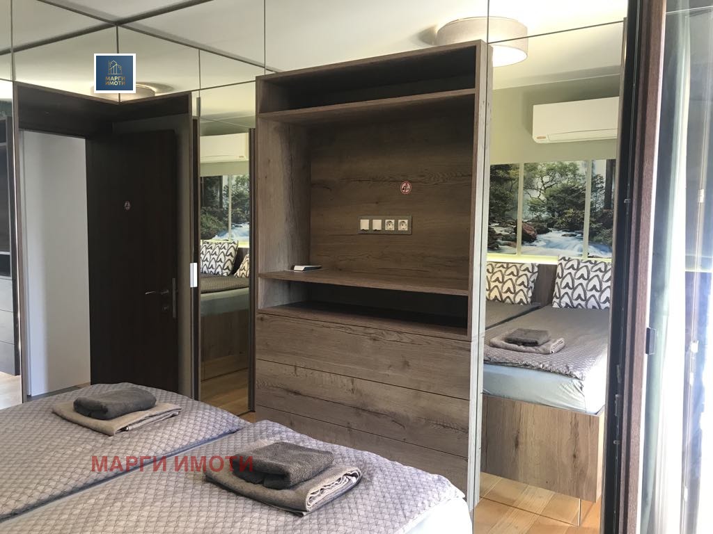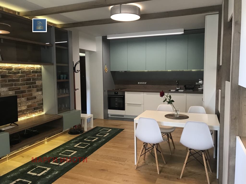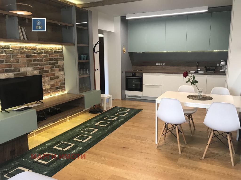 Жилището е обзаведено с висок клас електоуреди и всичко е направено с вкус и стил. Не е правен компромис в качеството на обзавеждане. Мебелите са напревени по поръчка с прецизност към всеки детайл за функционална употреба в ежедневието. Не е правен компромис в качеството. Кухнята е изцяло оборудвана с всички необходими съдове и прибори. Осигурени са спално бельо, възглавници и олекотени завивки.Сградата е с луксозни общи части на спокойна и комуникативна локация с контрол на достъп. В близост се намират хипермаркети, спирки на градски транспорт, заведения, училища и детски градини.