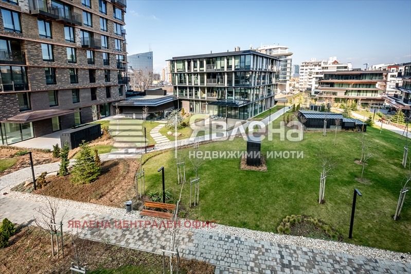 Имотът е с площ от 99 кв.м и се състои от просторен хол с кухненски кът, коридор, две самостоятелни спални, баня с тоалетна и тераса. Разположен на нисък етаж, във вътрешната част на Комплекса, имотът дава усещане за уединение и спокойствие сред зеленина, избягвайки шума от булеварда. Апартаментът се отдава напълно обзаведен, като втората спалня може да бъде обзаведена според нуждите на бъдещия наемател. Този уютен имот разполага и с подово отопление, както и климатици за охлаждане през летните месеци.